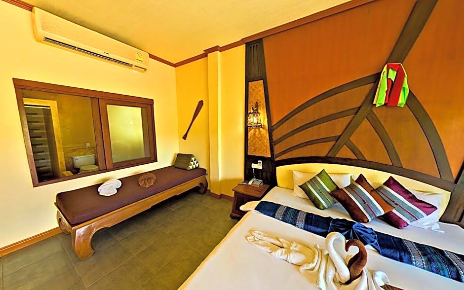 This twin/double room features a garden view with an in room sitting area, a teak wood sofa, a balcony with sitting area, an electric kettle with tea/coffee , 2 free water, a hair dryer, an air conditioning, a free safety box, a television, a separated shower and bathtub with hot and cold water, bathrobe and slipper.